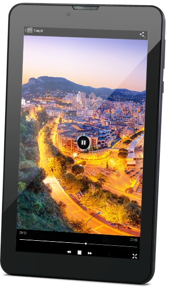 ОС: Android 4.2. Процессор: 2-ядерный MediaTek MT8312, 1.3 ГГц. Память: 512 МБ ОЗУ, 4 ГБ ПЗУ. Карты памяти: microSD (максимальный объем 32 ГБ). Вес: 310 г. Размер: 189*109*11 мм. Батарея: 2800 mA. Экран: TFT. Размер, д.: 7. Камера: 2 МП , Wi-Fi, Bluetooth, 3G, GPS.